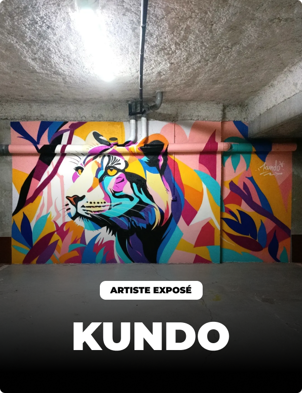 La période du confinement lui permit de faire le point sur lui-même et de prendre conscience de ce qu’il désirait réaliser dans sa vie. Après avoir pratiqué le lettrage, il s’orienta vers des peintures à l’aérosol figuratives et très colorées. Son père voit dans l’activité artistique de son fils la continuité de ce qu’il faisait.Le pseudo de l’artiste est issu du Jeet Kune Do, « voie du poing qui intercepte ». Le Jeet Kune Do est un concept martial, et non pas un sport ni un art martial traditionnel. Il fut créé par Bruce Lee en 1967 : le principe est d’intercepter les mouvements de l’adversaire avant qu’il ne touche, d’arriver premier en partant second.Kundo possède un sens aigu de l’esthétique. Il a le souhait d’embellir la ville où il habite, Bondy, afin de vivre dans un environnement qui dégage des énergies positives, améliorant ainsi la vie au quotidien. C’est dans cet état d’esprit que l’artiste réalise ses œuvres, en prenant le temps de s’imprégner du lieu et en y mettant de la couleur.Kundo réalise régulièrement des fresques murales le long du canal de l’Ourcq, son lieu de prédilection.