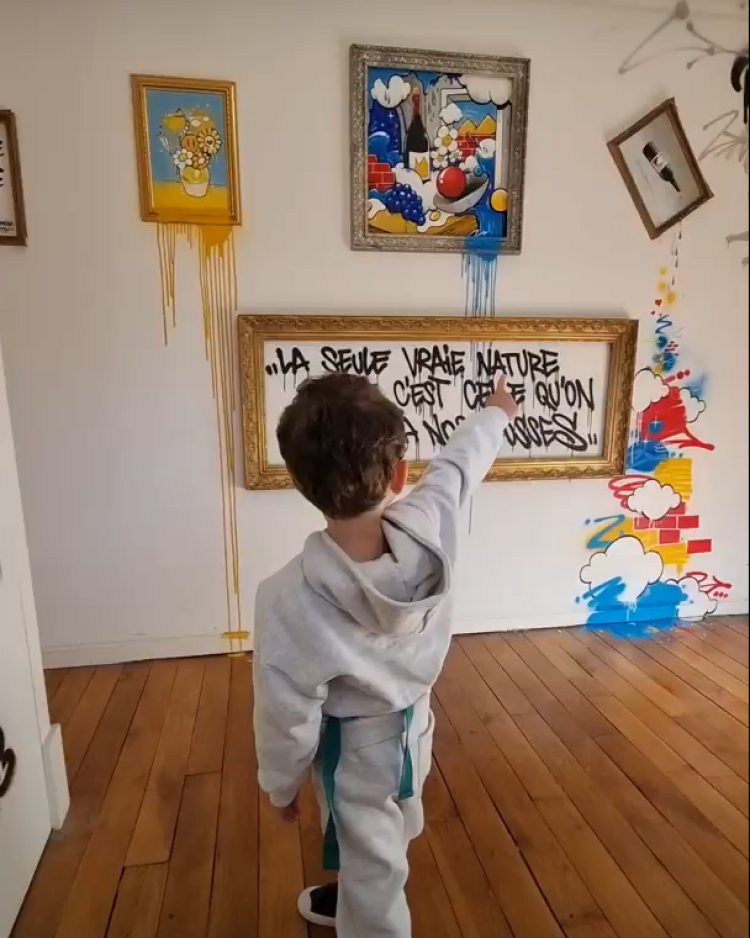 peinture depuis 2019. Passionné par la lettre à l’origine, il intègre au fil du temps des personnages et du